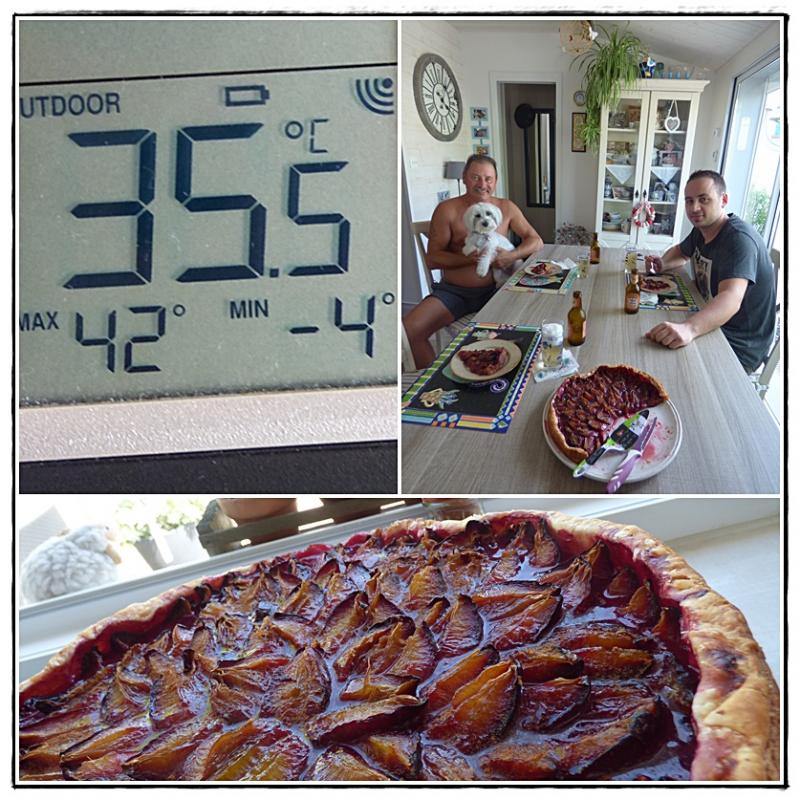 Julien est arrivé en gare de Royan vers 16h. Donc, un petit goûter s'imposait.... J'ai changé! pas de tarte à la mirabelle mais cette fois-ci, une bonne tarte aux quetsches et à la cannelle. C'est aussi un petit clin d'oeil à la Lorraine.