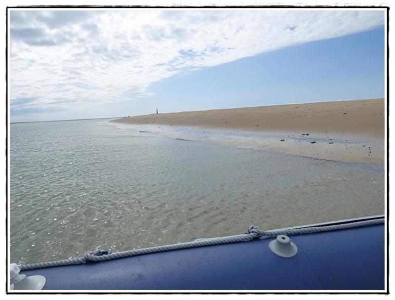 Profitons des derniers beaux jours pour une balade bateau direction l'île sans nom près de Cordouan. Nous y partons en pleine semaine et là, nous sommes sûrs de ne pas y rencontrer "âme qui vive". Au loin, nous apercevons le phare de Cordouan, surnomme "le roi des phares, le phare des rois".
