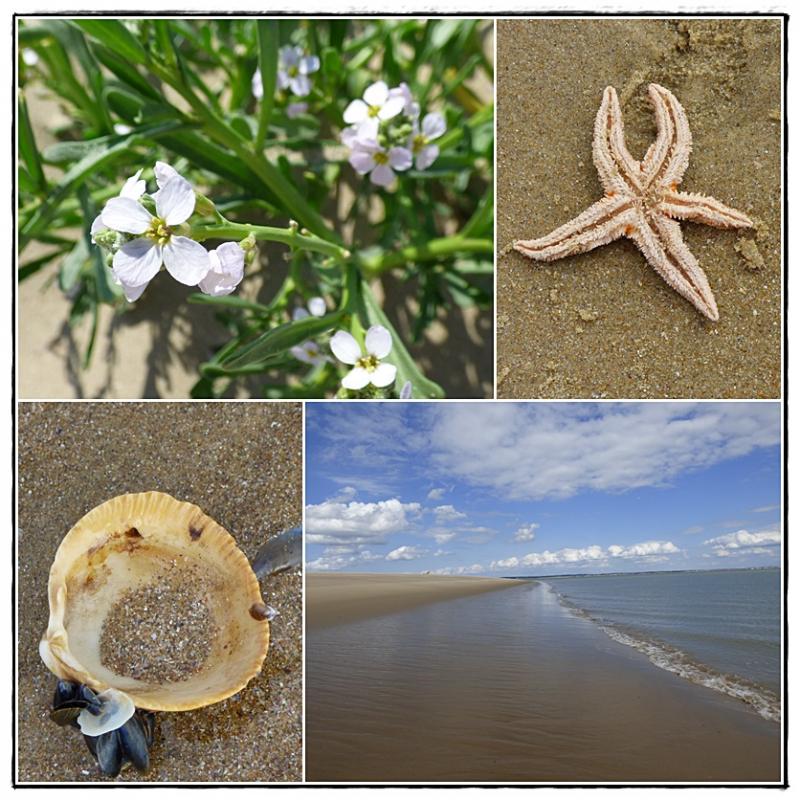 J'en profite pour partir à la découverte de cette île dans l'espoir de trouver des bois flottés qui pourraient me servir de supports pour mes broderies. Et voilà ce que je rencontre.... bien sûr des coquillages mais je suis très étonnée d'y découvrir cette plante fleurie!