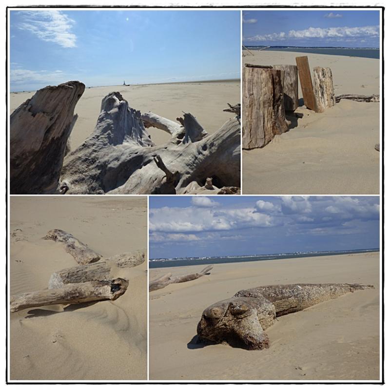 En voilà des bois flottés... mais un peu trop imposants pour mon point compté!!! Avec un peu d'imagination, certains font penser à de grosses bêtes préhistoriques...