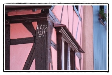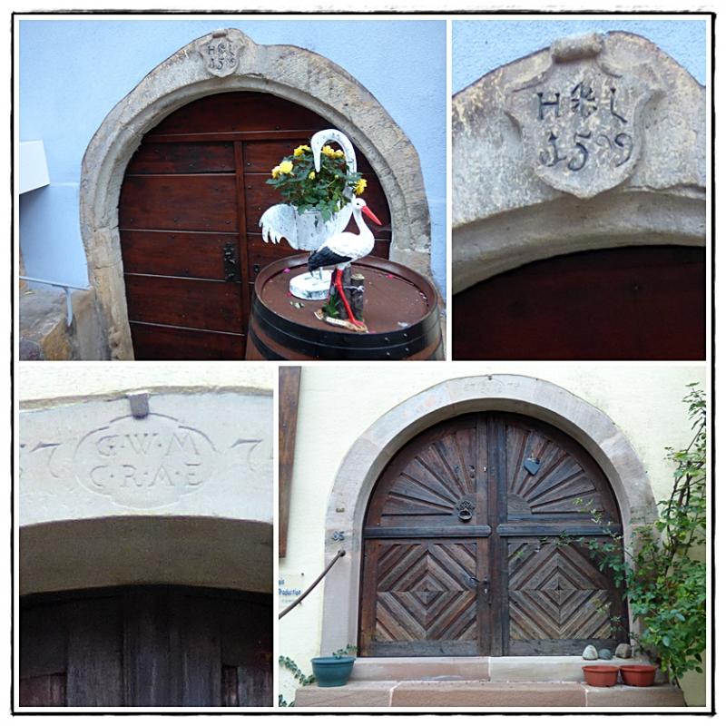 A Eguisheim, les frontons et linteaux de portes sont ornés de blasons. Ils sont typiques des villes alsaciennes.