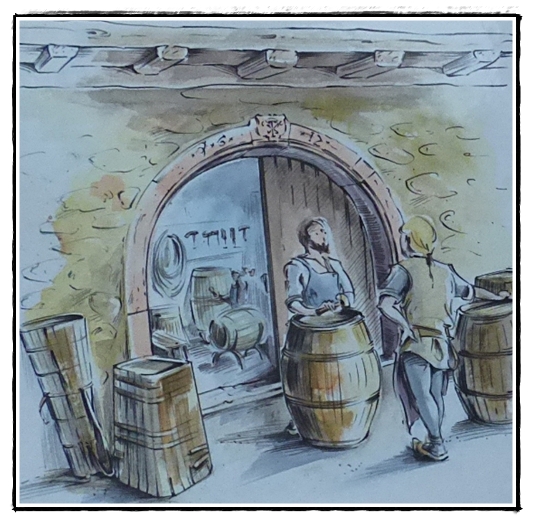 Certains écus indiquent une corporation selon un symbole codifié. Cette maison est celle d'un tonnelier, métier affiché par la représentation de ses outils au centre de l'emblème : deux pinces et un maillet.