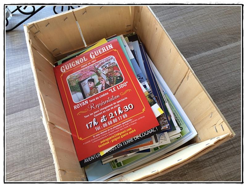 Avant leur arrivée, Roger est allé à l'Office du Tourisme de Royan pour chercher de la documentation afin de proposer des activités aux enfants. Nous avons tout réuni dans un panier d'huîtres... cela fait très local!!!