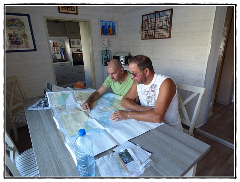 Carte à l'appui, Roger explique à Victor comment nous allons faire pour nous rendre à Cordouan en bâteau. Les enfants sont enchantés d'avance par cette balade.