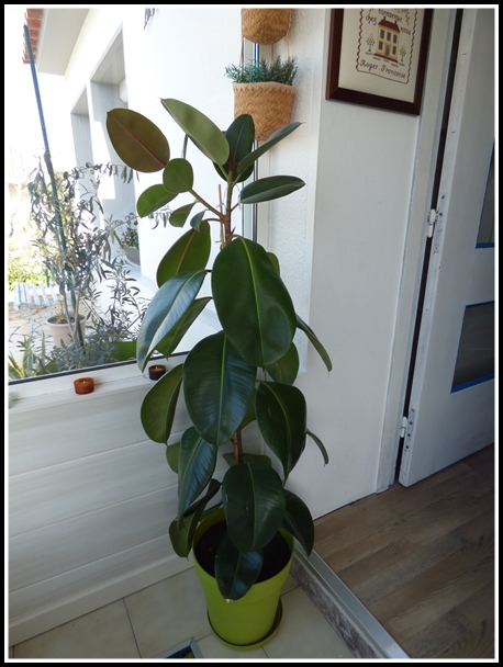 Je vous donne des nouvelles de mon caoutchouc.... il se porte à merveille. Je l'ai changé de place. Il est à présent dans la véranda et s'y plait beaucoup. Normal, il a beaucoup de lumière. Mais je dois veiller aux rayons du soleil....