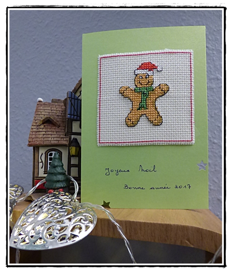 J'ai connu Nicole grâce à mon blog. Nous partageons la même passion : le point compté. Elle m'a envoyé cette jolie carte "handmade". Merci à toi pour cette délicate attention.