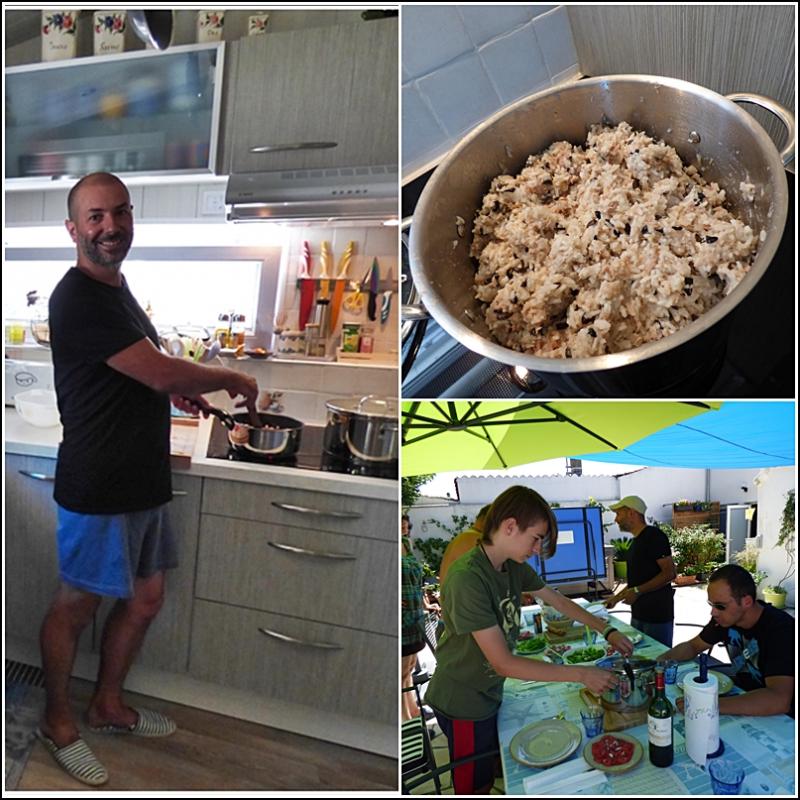 Ce jour-là, c'était au tour de Vic d'être aux commandes. Il nous a préparé une recette qu'il détient de son papa : du riz aux olives noires.C'est tout simple mais très bon.