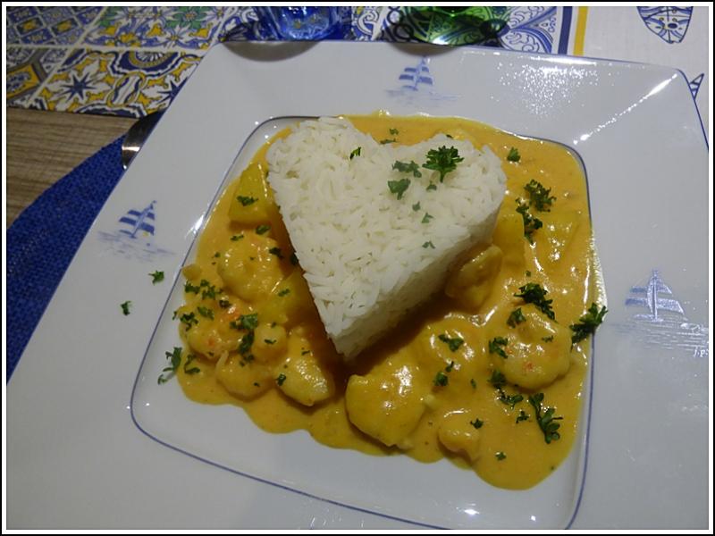 Un curry de crevettes à l'ananas (lien vers la recette) collait parfaitement avec ma table dressée sur le thème de la mer.