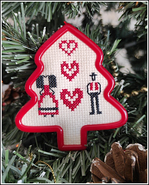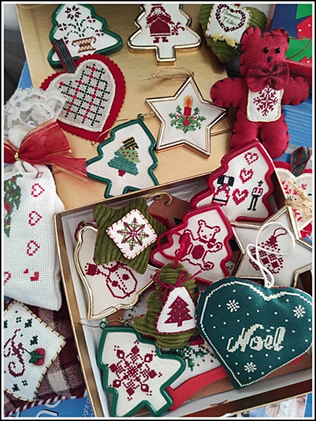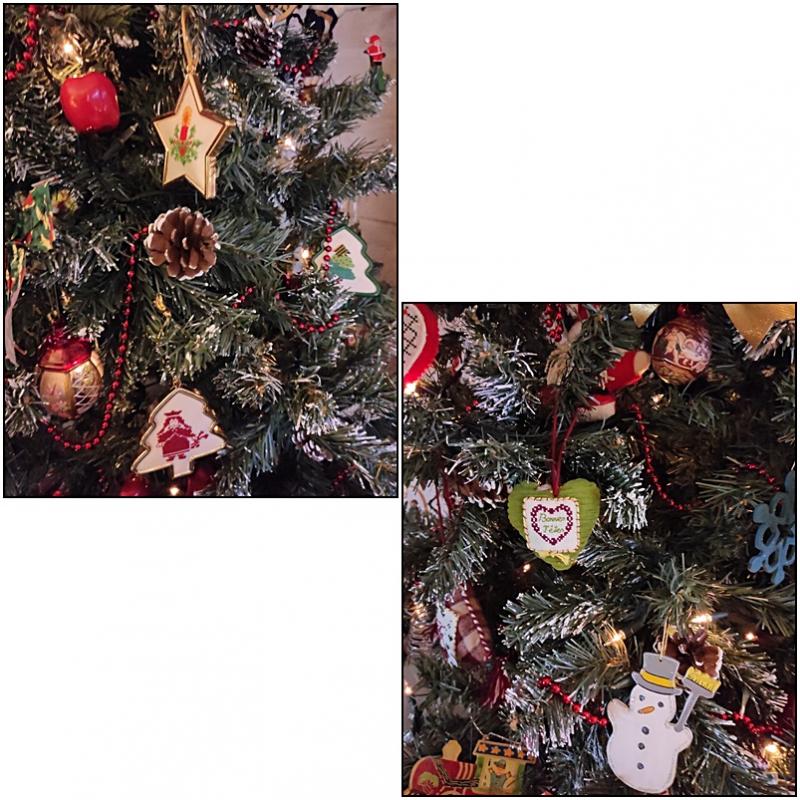 Tout d'abord, j'ai commencé par faire le sapin. Un sapin que j'ai baptisé "sapin de brodeuse" avec tous ces petits motifs que j'ai brodés au fil du temps et qui me correspondent bien.