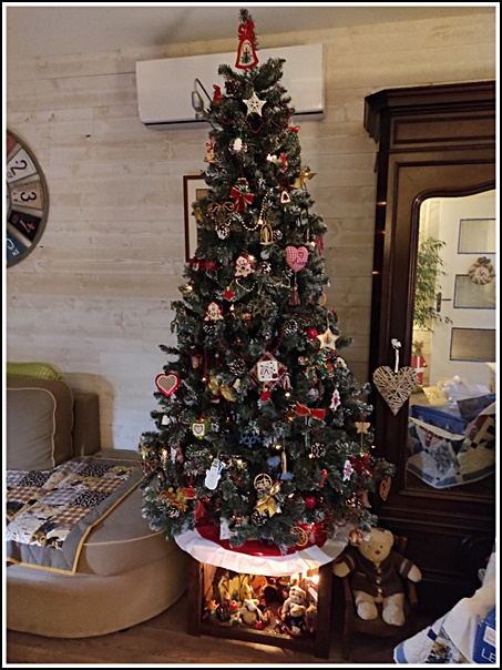Le sapin est installé dans son petit coin habituel et la déco commence. Je me régale, j'ai toujours aimé faire le sapin même lorsque j'étais encore enfant...
