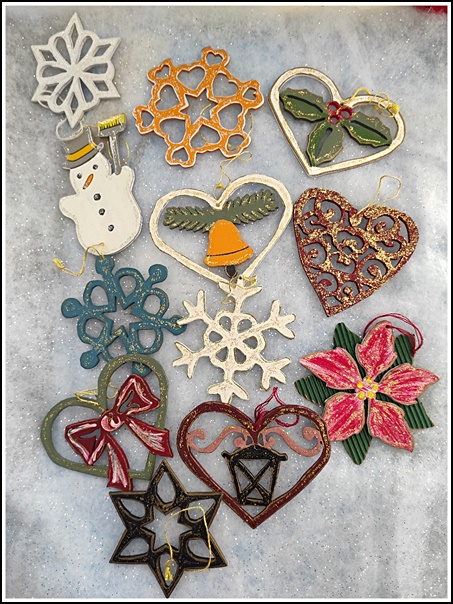 Mon "bricoleur préféré" a aussi pris une part active à la décoration du sapin. Sa scie à chantourner a chauffé. Puis, j'ai sorti mon matériel de peinture et voici encore quelques décos maison.