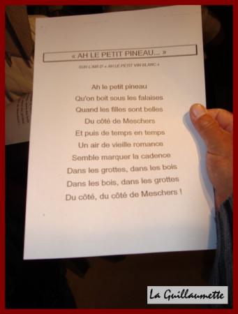 Après avoir dansé, s'être restauré, on termine la soirée en chanson.... sur l'air "Ah! le petit vin blanc qu'on boit sous les tonnelles"....