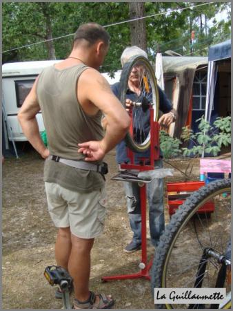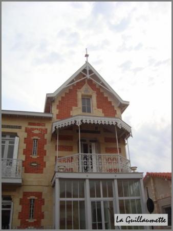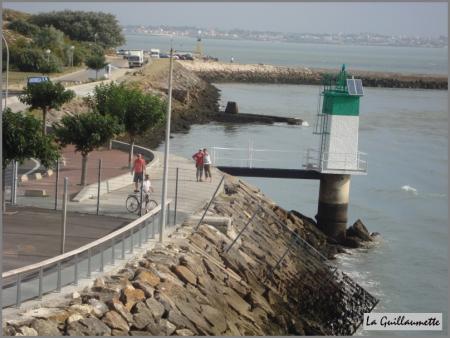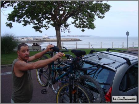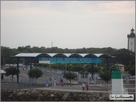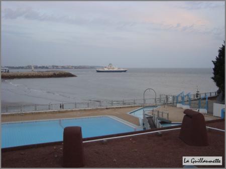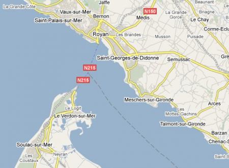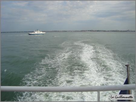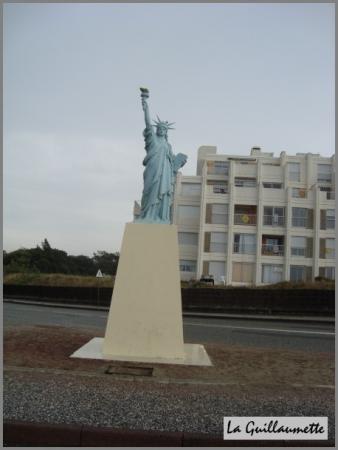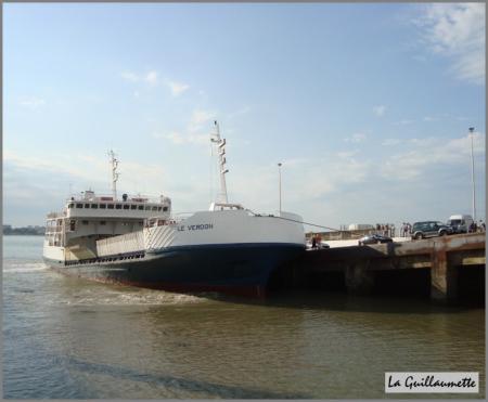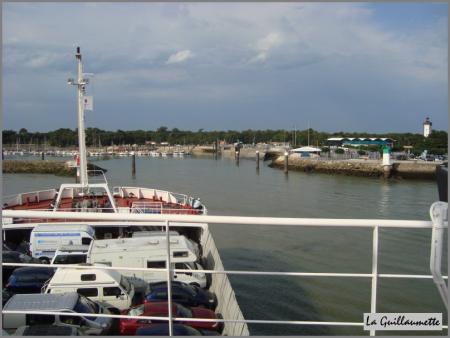 | Ce matin, nous allons rendre visite à des amis lorrains, Martine et Patrice qui sont en vacances à Soulac-sur-mer.  Nous allons franchir l'estuaire de la Gironde grâce au bac qui assure ce service. Cette ligne relie Royan au Verdon (Pointe Nord du Médoc) et vice versa et permet ainsi d’éviter le long détour de l’estuaire et le franchissement des ponts sur la Dordogne et la Garonne. La distance est de 3 milles (6 kilomètres) et la traversée dure 20 minutes environ. A plus tard pour vous raconter notre escapade.   Nous arrivons à Royan pour prendre le bac. Nous garons notre voiture dans une petite rue près de l'embarcadère et enfourchons les vélos pour monter sur le bac.  La traversée avec la voiture est très chère : 22€30 pour une voiture et ensuite 3€10 par voyageur..... Alors, nous avons opté pour la solution "vélo" qui est plus raisonnable : 1€60 pour la bicyclette et ensuite 3€10 par voyageur! Nous embraquons à bord "du Verdon" qui peut accepter 500 passagers et 50 véhicules. Nous quittons le port de Royan.... On croise l'autre bac "La Gironde" qui assure la liaison Le Verdon-Royan. C'est celui que nous prendrons ce soir pour rentrer. Nous approchons des côtes et de l'entrée du port. Nos amis, Martine et Patrice sont venus à notre rencontre. Nous les apercevons...  Depuis l'embarcadère du Verdon, nous apercevons le phare de Grave. Il balise l'accès à l'estuaire de la Gironde. Il se visite l'été. On accède à sa lanterne par un escalier de 107 marches qui mènent à la plate-forme. Nous empruntons la piste cyclable et suivons nos amis pour nous rendre dans leur camping.  Nous mangeons chez nos amis et goûtons une spécialité du sud-ouest : "le cou d'oie farci".   La préparation est simple. On tranche le cou et on fait revenir les rondelles à la poêle. On accompagne ce plat de pommes de terre sarladaises.  C'était la première fois que nous en mangions. Nous avons vraiment apprécié! Après la café et malgré un temps incertain, nous décidons d'aller nous promener à Soulac à vélo.  Nous croisons le petit train touristique PGVS, comprenez "Pointe de Grave, Verdon, Soulac".... qui assure une liaison buissonnière sur une voie ferrée de 7 kilomètres longeant la piste cyclable. Il servait dans les années 30 au transport de pierres destinées à la construction de brise-lames de la défense côtière. La statue de la liberté de Soulac-sur-Mer a une bien curieuse histoire. A Bordeaux dans le célèbre quartier des Chartrons, lieu essentiellement voué au négoce du vin de Bordeaux, il existait une fontaine, située en bordure d’une maison et comme l’eau qui s’en écoulait sur le trottoir gelait en hiver entraînant chutes et jambes cassées, on décida donc de construire au centre de la place Picard une fontaine monumentale. On pressenti Bartholdi pour qu’il vienne construire la fontaine avec une reproduction de sa statue de la Liberté, ce qu’il réalisa pour la somme de 42 000 francs. Cette statue fut inaugurée le 27 avril 1888, en moins de cinq minutes, par le président de la république Sadi Carnot.  Elle veilla à la destinée du quartier jusqu’à ce que les allemands en 1941, pendant la Seconde Guerre Mondiale, décidèrent de la déporter en Allemagne afin d’être refondue sous forme de canon. Et nos braves cheminots français ont détourné le wagon qui la transportait vers un lieu inconnu jusqu'à ce qu'elle réapparaisse sur le front de l’Océan à Soulac-sur-Mer où elle essaie, en vain, d'entrevoir sa célèbre sœur...... Nous longeons la plage.... Comme il pleuvait à ce moment-là, aucun estivant pour s'amuser dans les vagues..... Nous allons visiter la basilique Notre Dame-de-la-Fin-des-Terres.  Au 17ième siècle, le village de Soulac disparaît des chroniques locales, enseveli sous les dunes de sable et menacé par l'océan. L'église suit le même chemin : abandonnée en 1746, elle n'émerge plus que la pointe du clocher sur lequel d'ailleurs, on scella à l'époque des anneaux pour accrocher les chevaux! Clocher que, dit-on, Louis XV aurait acheté pour en faire un phare ….. C'est en 1860 que les travaux entrepris sous l'impulsion du cardinal Donnet, archevêque de Bordeaux, permirent à cette église d'émerger à nouveau des sables…. Voici l'arrière de l'église. On peut voir à l'intérieur une chaire monumentale en pierre. Cette église, construite vers le 12ième siècle, à l'époque des grands pèlerinages vers Compostelle, est classée patrimoine mondial par l'Unesco depuis 1891. Soulac a le mérite d'être la plus ancienne station balnéaire du Médoc puisqu'elle fut construite aux alentours de 1874, dans le style néo-colonial typiquement à la mode en cette fin de XIXième siècle. Soulac a connu son apogée avec la mode des bains de mer et est devenue une station balnéaire en 1849. De cette époque, la ville conserve un ensemble exceptionnel de 500 villas de style néo-colonial. Ces résidences étaient alors construites avec des briques, du bois et des pierres. Un circuit découverte d'une durée d'1h30 est proposé par l'office du tourisme pour partir à la découverte de ces "villas Soulacaises". La fin de notre journée approche. Nous prenons le dernier bac à 20h30 et rejoignons Royan. Roger raccroche les vélos et direction Meschers. Nous avons passé une journée bien remplie avec nos amis.  Le ballet incessant des bacs continue......