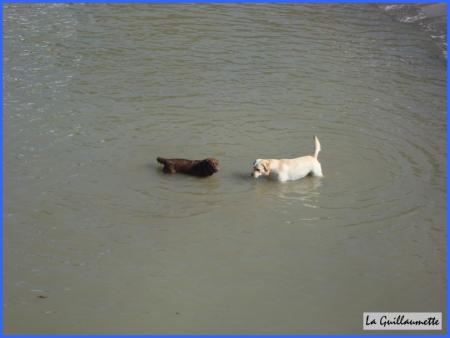 A peine arrivée en bas, Sarah file jouer dans l'eau avec un autre copain labrador....