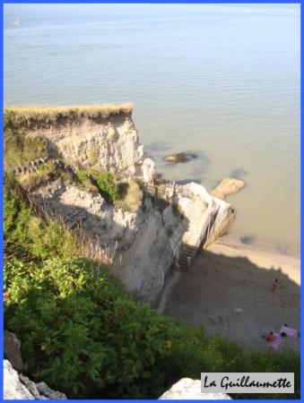 Par conche, il faut entendre, "petite crique sablonneuse". La conche à Cadet vient du nom d'un écumeur de mer. D'après la légende, il avait un bateau dont le timonier était un mouton noir aux cornes recourbées. Il sortait par gros temps, attirait les navires sur les écueils, causant de nombreux naufrages par ses malédictions. Je ne sais pas si vous vous en souvenez mais je vous en ai déjà parlé dans l'article "Nocturne aux grottes de Régulus". Pour notre rendre à cette petite plage, nous empruntons la route qui longe la falaise. Puis, par un petit chemin qu'il faut connaitre.... nous surplombons les carrelets....