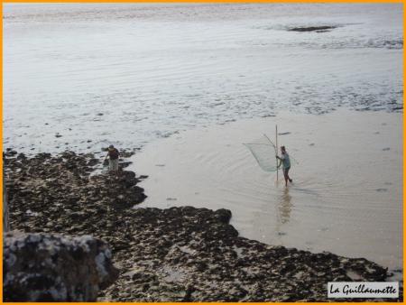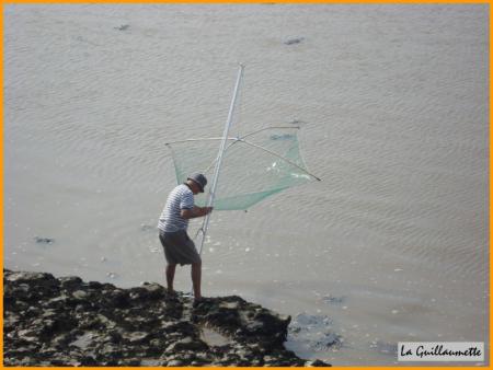 J'ai tout de même photographié un pêcheur qui pêchait à pied avec un carrelet dans la baie de Talmont.