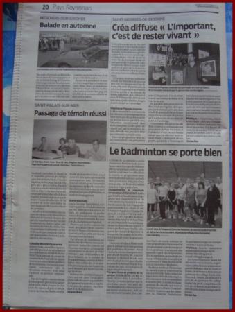 Le journal Sud-Ouest du samedi 10 octobre 2009 a consacré un article au club de badminton dans lequel Roger va s'entraîner. Ce club s'appelle l'Entente Badminton Royan-Saint-Georges-de-Didonne.