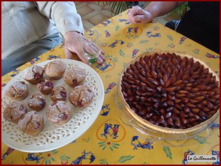 Cet agréable après-midi entre amis se termine chez nous avec une tarte aux quetsches (congelées) du jardin de Monique et Roger et quelques muffins aux cerises (congelées) et à la farine de châtaigne préparés par mes soins.
