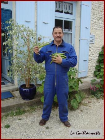 Et lui aussi m'a fait une surprise. Il a réussi sa plantation de fèves qu'il avait faite à l'automne et voilà une partie de sa récolte!