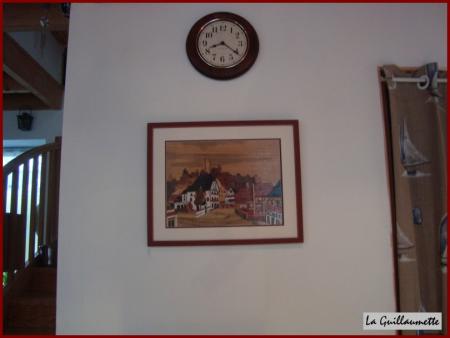 Pendant que Roger était parti faire un petit tour dans son jardin, je me suis vite dépêchée de déballer son beau village alsacien pour l'accrocher au mur et lui faire la surprise.....
