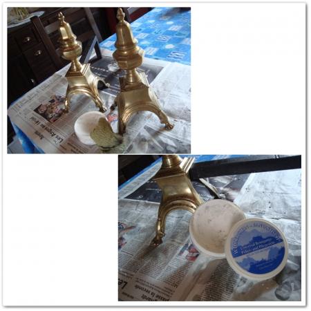 Je profite des beaux jours et du fait que nous n'ayons plus besoin de chauffer pour nettoyer les chenets, les ustensiles et le pare-feu de la cheminée. Ces objets sont en laiton. Ils sont très anciens car ils étaient dans la maison de mon papa à Meschers.