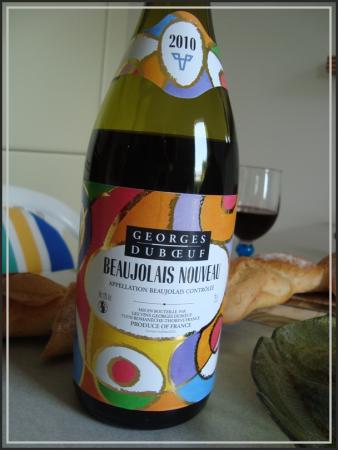 Nous n'avons pas failli à la tradition..... Ce matin, nous sommes allés en courses à Super U Saujon et j'en ai profité pour acheter une bouteille de Beaujolais nouveau. J'ai toujours l'habitude de choisir du "Georges Duboeuf".