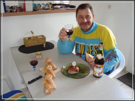 Ce fut l'occasion de nous faire un p'tit apéro campagnard! J'avais acheté une boule de pâté de canard et une baguette en épis.