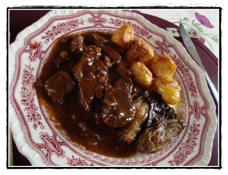 - Carbonade flamande (lien vers la recette) accompagnée de pommes de terre au paprika (lien vers recette) et endives braisées.