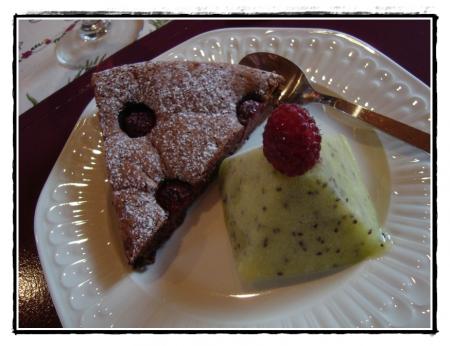Une note d'originalité pour le dessert : sorbet aux kiwis et fondant au chocolat aux framboises (liens actifs vers recettes).
