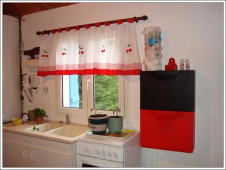 On habille la fenêtre... Le hasard a bien fait les choses car j'ai apporté de Lorraine ce rideau que j'avais acheté pour la fenêtre de notre cuisine et que je n'avais jamais cousu. Super pour la couleur!