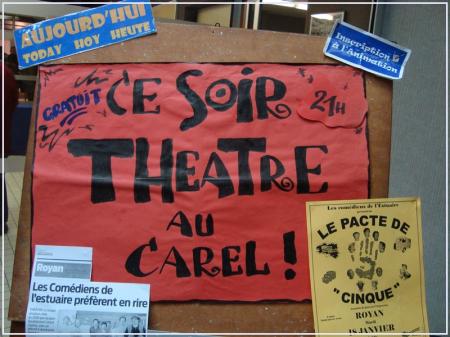 Ce soir, nous étions de sortie. Dans le Sud-Ouest de ces jours-ci, Roger avait noté que la troupe amateur "Les Comédiens de l'Estuaire" se produisait au CAREL à Royan.