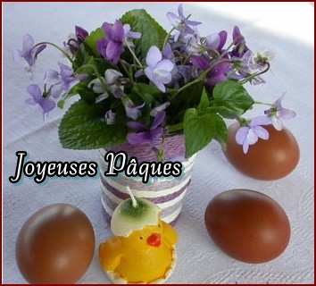 Comme nous étions de sortie hier soir, je n'ai pas eu l'occasion de venir vous voir. Je me rattrape ce matin et vous souhaite de joyeuses fêtes de Pâques.
