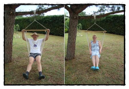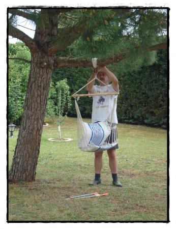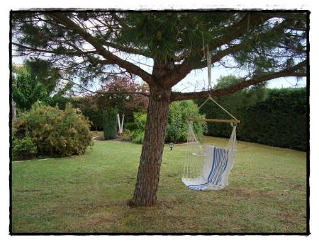 Une chaise suspendue, une paire de crocks et c'est déjà les vacances! Heureusement, les nids de chenilles ne sont plus là....