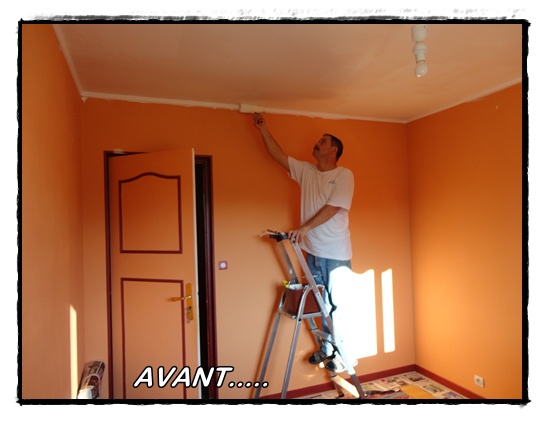 Au cours du mois de décembre et juste avant notre séjour en Lorraine, Roger s'était lancé dans la réfection de la dernière des chambres. Je ne peux pas résister à la tentation de vous montrer sa couleur d'origine....