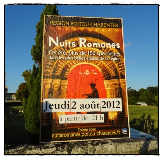La Région Poitou-Charentes nous offre durant tout l'été, plus de 150 soirées gratuites qui permettent de découvrir la richesse du patrimoine roman du Poitou-Charentes. Pour chacune d'entre elles, un spectacle, conçu pour s'adapter à l'environnement architectural, est proposé par des artistes professionnels.