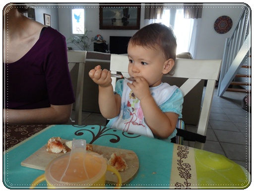 Après le petit-déjeuner, au cours duquel Lucie a bien apprécié la confiture de fraises de "Bomi Françoise".....