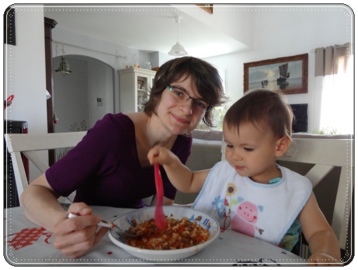 Retour à la maison pour goûter les tomates farcies de "Bomi Françoise". Hum! Lucie a apprécié...