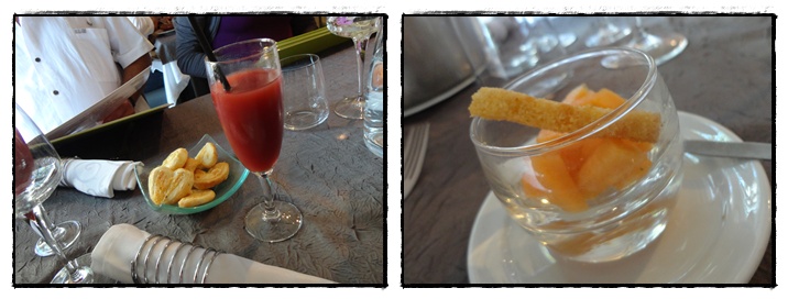 Pour accompagner ce cocktail maison, quelques dés de melon parfumés au pineau blanc.