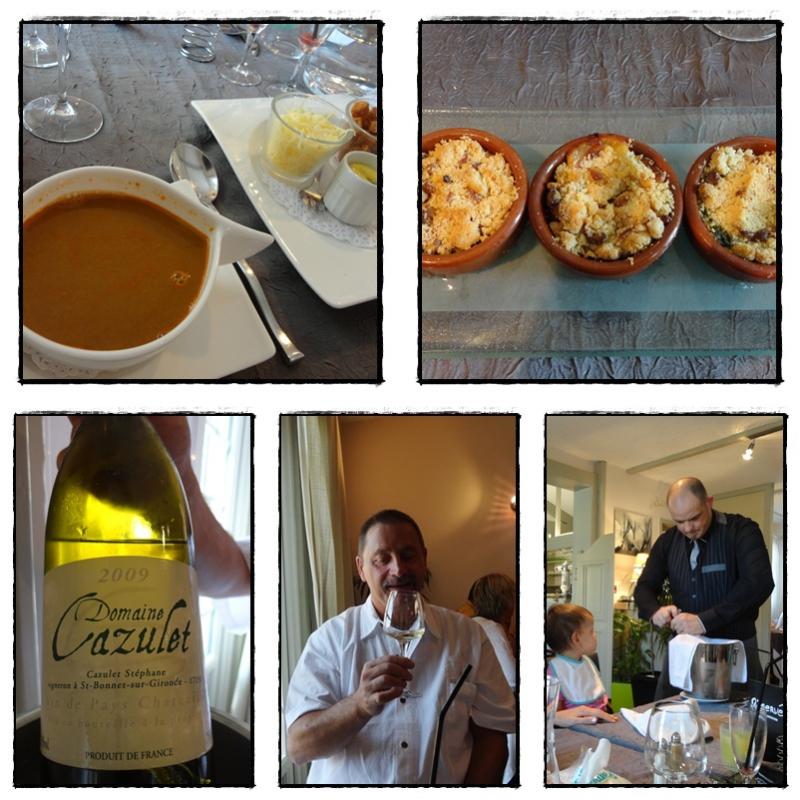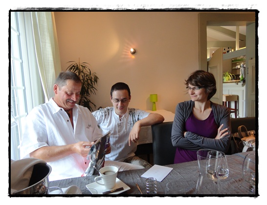 C'est Roger qui a l'honneur de goûter le vin, un petit vin blanc de pays charentais mis en bouteille à la propriété chez Cazulet à Saint-Bonnet-sur-Gironde.