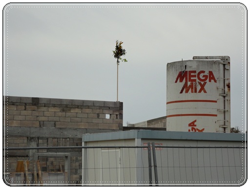 Les travaux de construction de l'école avancent à grands pas... et je viens de voir aujourd'hui que le bouquet final était posé sur le toit.