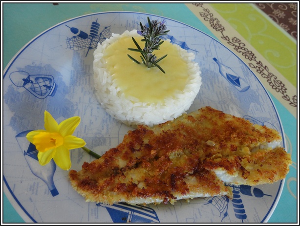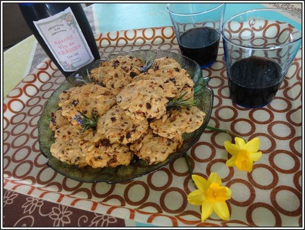 | J'ai été gâtée... Roger m'a offert un joli bracelet. et moi, j'ai préparé un petit repas.... Des cookies aux tomates séchées et pesto pour accompagner notre traditionnel vin de cerises fait maison. La recette est ICI. des filets de maigrette panés accompagnés de riz thaï sauce au beurre.  La recette est ICI.