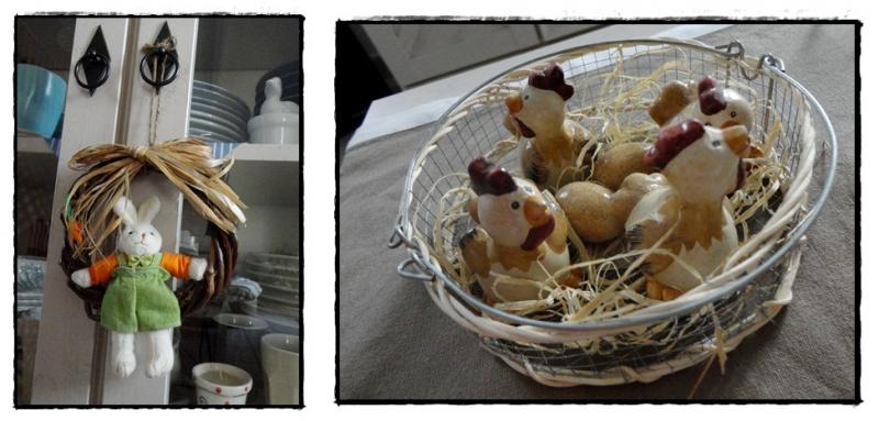 A la cuisine, un panier à oeufs en fome de poule... c'est juste ce qu'il faut pour la circonstance! Passons à la salle-à-manger. J'ai revu la déco du dessus des enfilades.