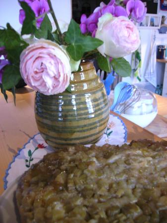 Un joli bouquet de fleurs que mon voisin m'a offert à notre arrivée à Meschers et un bon gâteau renversé à la rhubarbe que j'ai fait hier !