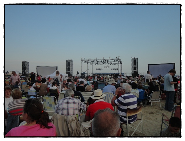 Nous avons assisté à la deuxième soirée du festival "Un Violon sur le Sable". Comme d'habitude, la plage de la Grande Conche de Royan est bondée et nous profitons ce soir-là d'une soirée d'été tiède et sans vent. C'est un temps idéal pour une fête sous les étoiles.