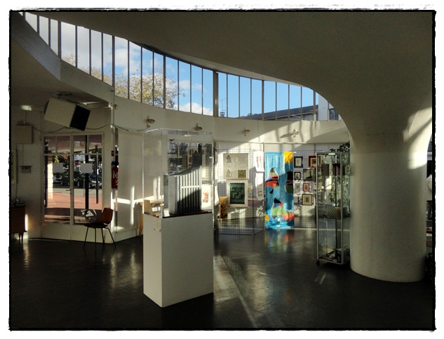 | L'ancienne gare routière de Royan est un des édifices modernistes que compte cette ville. Elle a été édifiée en 1953 et elle est située le long d'un des principaux axes, le cours de l'Europe. Elle a été construite par les architectes Louis SIMON et Pierre GRIZET qui sensibles à l'architecture brésilienne, reprend le dessin de la salle de bal de Pampulha à Bello Horizonte. Juste par curiosité.... j'ai fait des recherches sur le net pour découvrir l'architecture de cette salle de bal au Brésil et voici la photo trouvée sur le net. Il y a vraiment des ressemblances!   L'ancienne gare routière forme une rotonde qui se poursuit à l'extérieur par un long portique, constitué d'une dalle de béton portée par des piliers métalliques et qui couvre les anciens quais.   La salle intérieure est un espace unique qui permet la circulation autour d'un cône central de béton qui s'évase comme un parasol renversé. Il sert de descente d'eau pluviale. L'espace est enclos par de larges baies vitrées. Pendant les Journées Européennes du Patrimoine 2012, cette ancienne gare routière a été rebaptisée "Galerie Louis Simon", en l’honneur de ce grand architecte de la Reconstruction de Royan. Depuis sa fermeture en 1998, elle accueille des expositions d'art contemporain.  Comme chaque année, l'Atelier des Arts Plastiques de Royan expose le travail de ses élèves. Nous y sommes allés cet après-midi et ce sera l'objet d'un prochain article (voir lien).