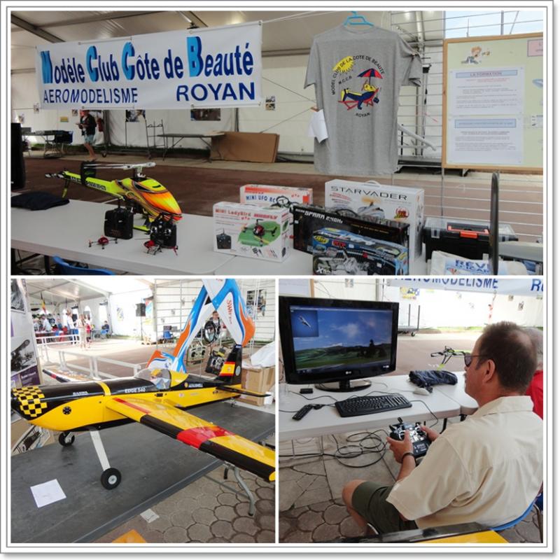 L'aéromodélisme de Royan était aussi représenté. Nous avons pu découvrir des avions, planeurs et hélicoptères de toutes tailles. Roger est aux commandes, initié par un des responsables du club....