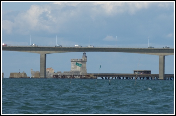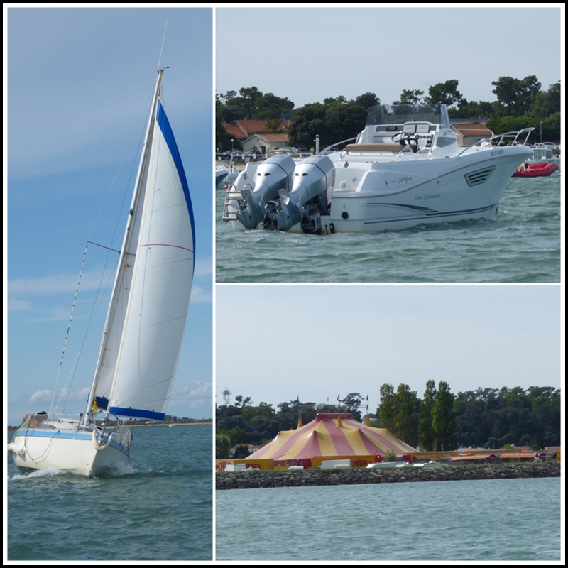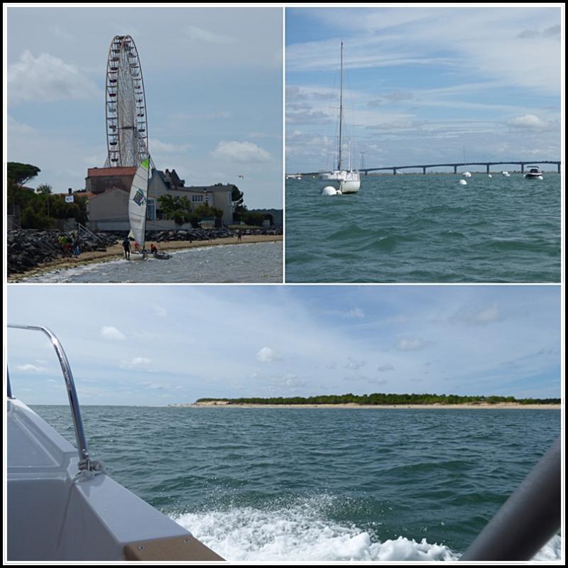 Nous partons de la plage de Ronce-les-Bains, nous apercevons le pont de l'île d'Oléron et naviguons direction la pointe de Gatseau.