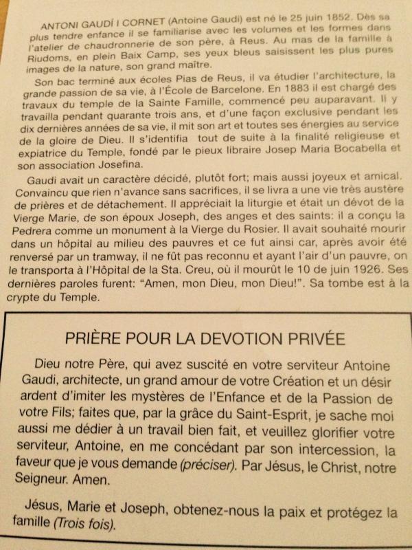 Gaudi est le principal architecte de barcelone pour son originalité - les plans de la cathedrale viennent de Gaudi et sera terminée en 2026- soit 200 ans après sa mort- Gaudi est enterré dans la crypte de la cathedrale-