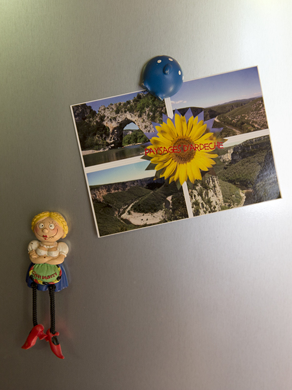 J'ai mis une étiquette "stop pub", et je me demande si je ne vais pas en mettre une "stop factures".... Mais aujourd'hui, point d'angoisses! Voila une belle carte postale, venant d'un lieu que je ne connais que par la télévision! ça me fait grand plaisir! Depuis mon article sur ma "collection" de cartes, je n'en avais plus sous les yeux....ben oui, parfois, je range un peu !!! La carte lue et relue, hop! sur le frigo! Merci encore, Chantal ! Je vais aller parcourir tes articles sur cette région si belle....
