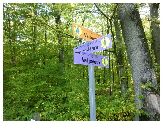 La marche se fait sur le sentier des 3 clériaux à Yutz, départ Val Joyeux. C'est une longue histoire, tout va par trois chez Saint Nicolas, le sentier est marqué de trois cercles d'or, la légende des 3 enfants au cuveau. Saint Nicolas viendra les sauver (ici l'histoire). Je reviendrai sur ce parcours la semaine prochaine, une autre marche est organisée par mon club de marche. voilà les 3 chemins,